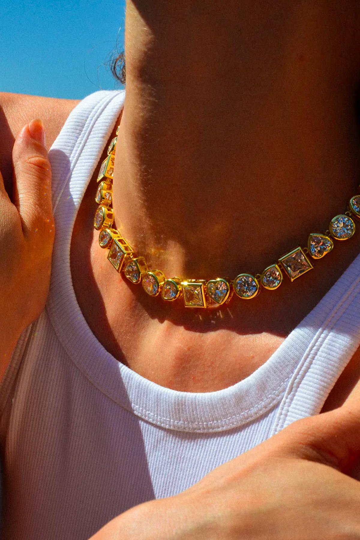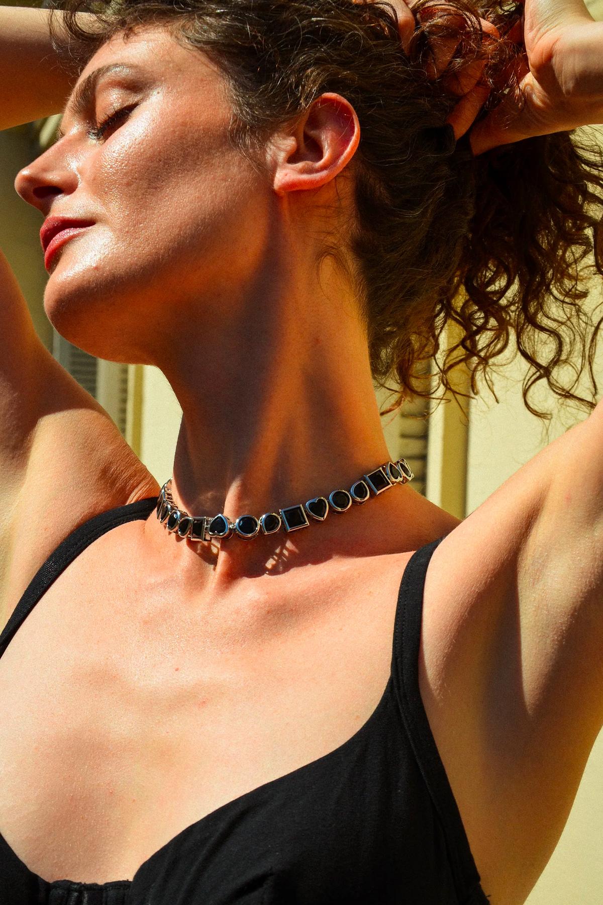 Hypso Paris - Collier Elena, collier plaqué or avec des cristaux blancs ou argenté avec des cristaux noirs.
