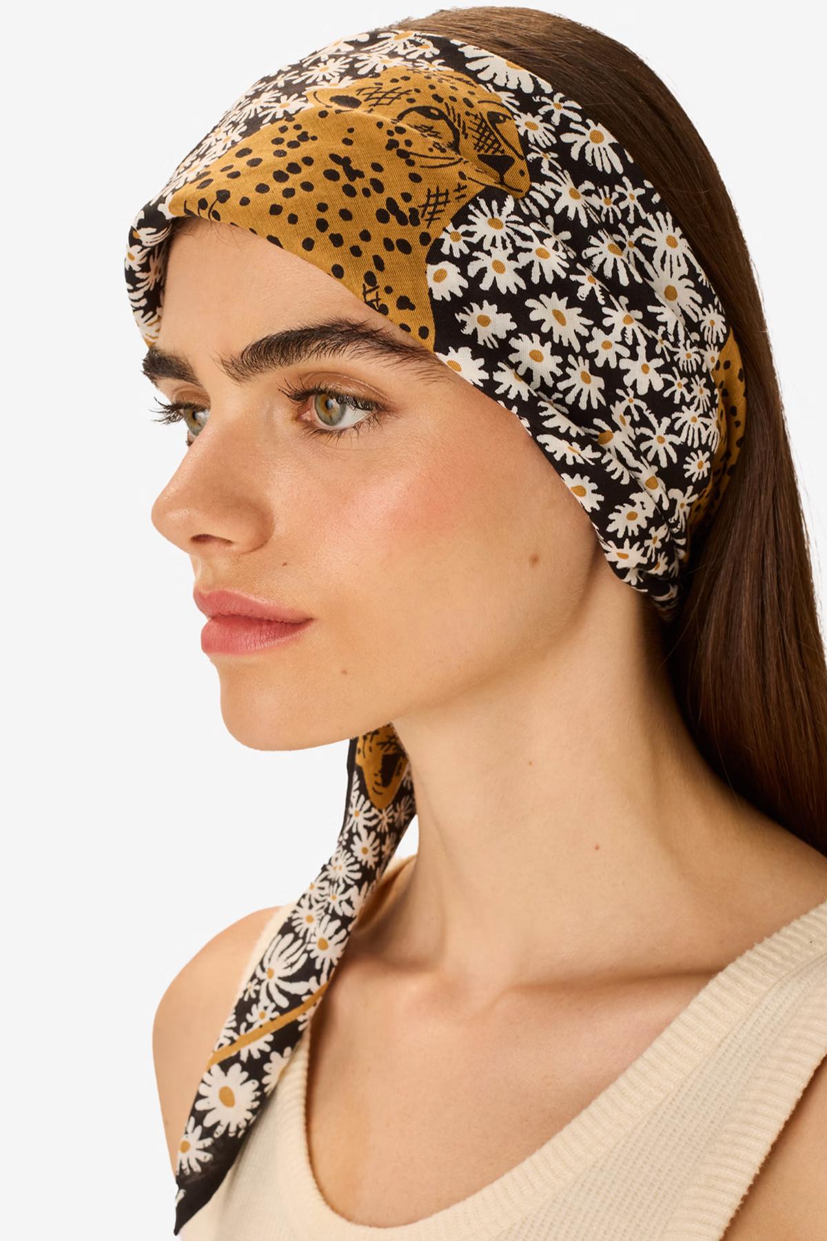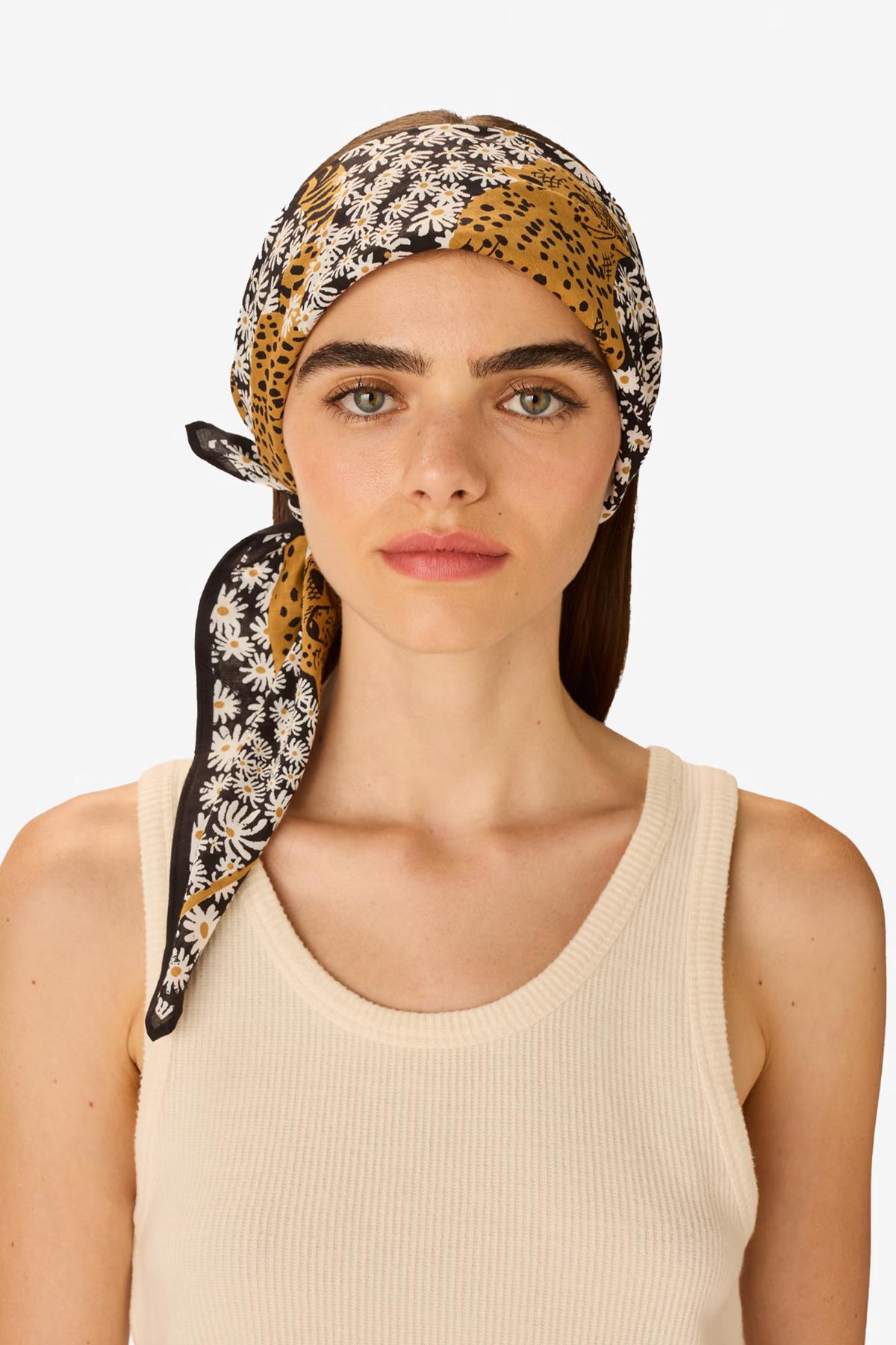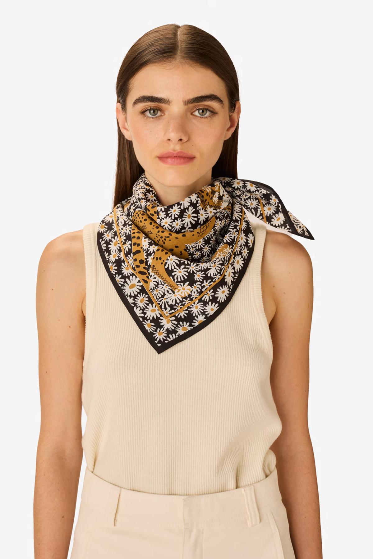 Inoui Editions - Carré 65 Pampa, classique carré noir, en coton et tencel, de la collection Pampa, à nouer autour du cou ou dans les cheveux.