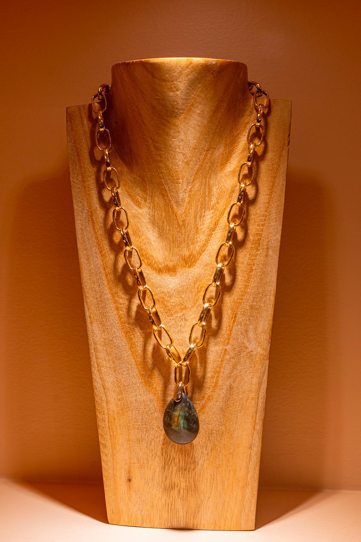 Niiki Paris - Collier Thetys, collier avec une chaîne épaisse en acier doré et une pierre naturelle.