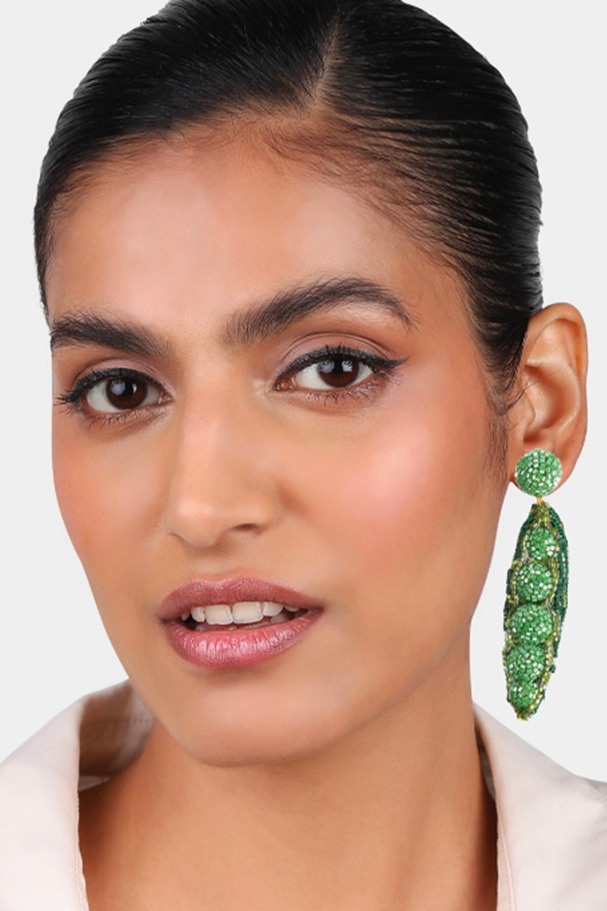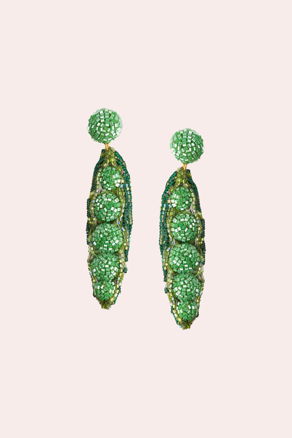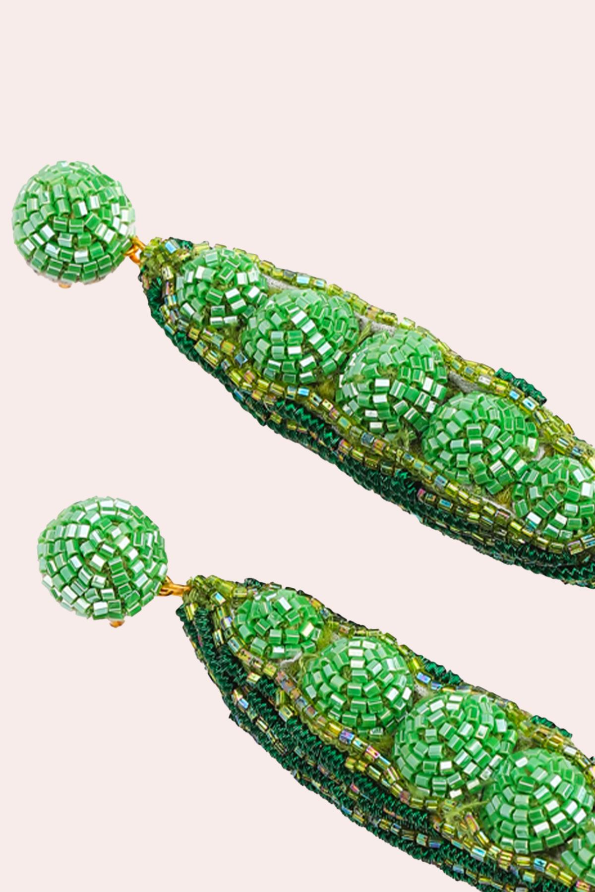 Olivia Dar - Boucles d'oreilles Pea, boucles d'oreilles petit pois vert entièrement brodées à la main.